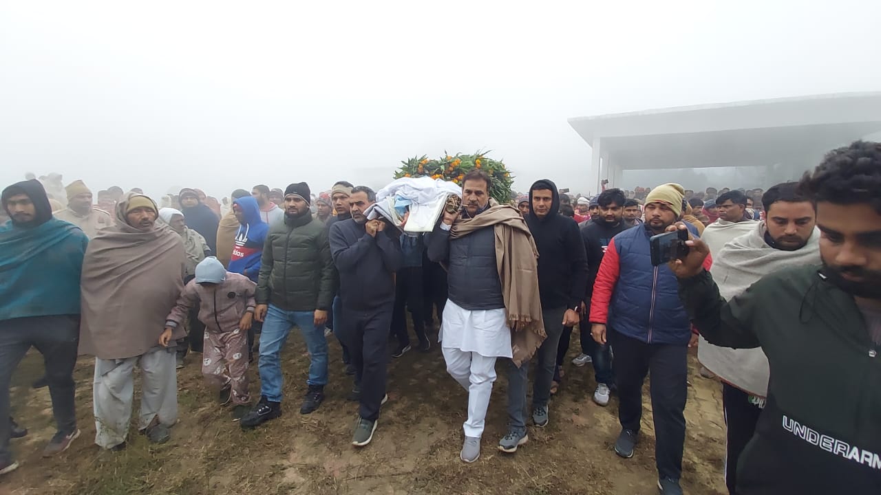 Muzaffarnagar News: उत्तर प्रदेश के कन्नौज जनपद में मुठभेड़ के दौरान मारे गए कांस्टेबल सचिन राठी का आज मुजफ्फरनगर जनपद में स्थित उनके पैतृक गांव शाहडब्बर में पूरे राजकीय सम्मान के साथ अंतिम संस्कार किया गया। ग़मगीन माहौल में जहां क्षेत्र के सैकड़ो लोगों ने सिपाही को अंतिम विदाई दी। वहीं, केंद्रीय राज्यमंत्री संजीव बालियान व बीजेपी के कई नेता और जिलाधिकारी अरविंद मल्लप्पा बंगारी व एसएसपी संजीव सुमन ने सिपाही के पार्थिक शरीर को कंधा देते हुए अंतिम यात्रा में शामिल हुए। इस दौरान मृतक सिपाही के पिता वेदपाल राठी ने बेटे को शहीद का दर्जा और दोषियों को फांसी की सजा दिए जाने की मांग की है।