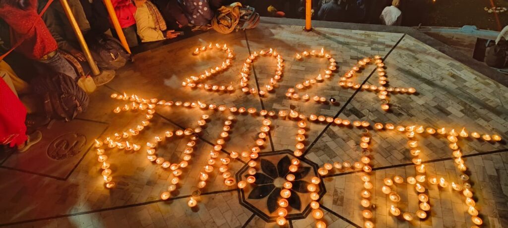 वाराणसी में श्रद्धालुओं ने नए साल का स्वागत और साल 2023 को मां गंगा की आरती के साथ किया। दशाश्वमेध घाट पर होने वाली विश्व प्रसिद्ध मां गंगा की आरती के दौरान 1100 दीपों से ” स्वागतम 2024″ लिखा गया।