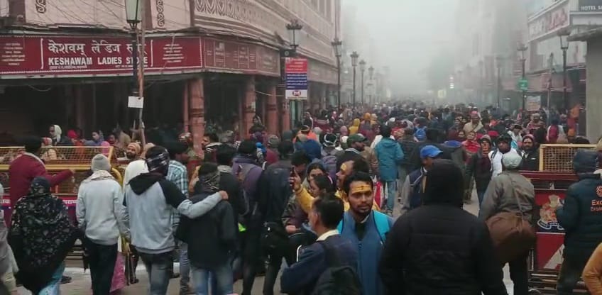 काशी में श्रद्धालुओं की आस्था ठंड पर भारी पड़ती नजर आ रही है। बड़ी संख्या में श्रद्धालु और पर्यटक अपने पूरे परिवार के साथ नए साल का सेलिब्रेशन वाराणसी में कर रहे है। बाबा श्री काशी विश्वनाथ मंदिर प्रशासन के अनुसार विगत वर्ष के पहले दिन बाबा श्री काशी विश्वनाथ मंदिर में 5 लाख के करीब श्रद्धालुओं ने दर्शन -पूजन किया था। ऐसे में इस वर्ष के पहले दिन करीब 7 लाख श्रद्धालुओं के दर्शन -पूजन की संभावना जताई जा रही है।