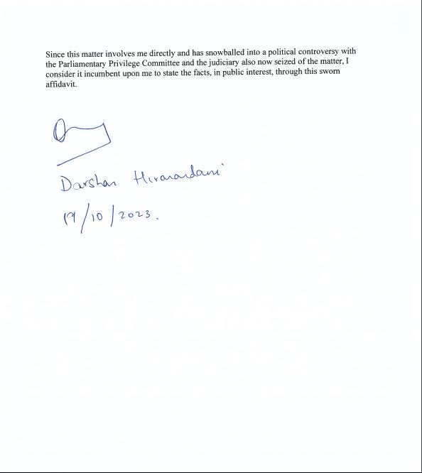 दर्शन हीरानंदानी ने गौतम अडानी और अडानी समूह पर निशाना साधते हुए सवाल पूछने के लिए सांसद महुआ मोइत्रा के संसदीय लॉगिन का उपयोग करना स्वीकार किया।दर्शन हीरानंदानी का कहना है कि सांसद महुआ मोइत्रा ने उन्हें अपना संसद लॉगिन और पासवर्ड प्रदान किया ताकि वह आवश्यकता पड़ने पर सीधे उनकी ओर से प्रश्न पोस्ट कर सकें।दर्शन हीरानंदानी का कहना है कि सांसद महुआ मोइत्रा पीएम नरेंद्र मोदी पर निशाना साधने के लिए गौतम अडानी पर निशाना साध रही थीं.