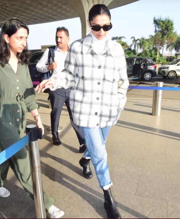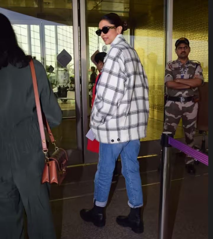 दीपिका पादुकोण इस दौरान विंटर लुक में काफी स्टाइलिश अंदाज में नजर आईं. एक्ट्रेस ने ब्लू डेनिम जींस के साथ व्हाइट स्वेटर पर चेक ब्लेजर पहना हुआ था. एक्ट्रेस ने अपने इस लुक के साथ ब्लैक कलर के शूज वेयर किए थे.