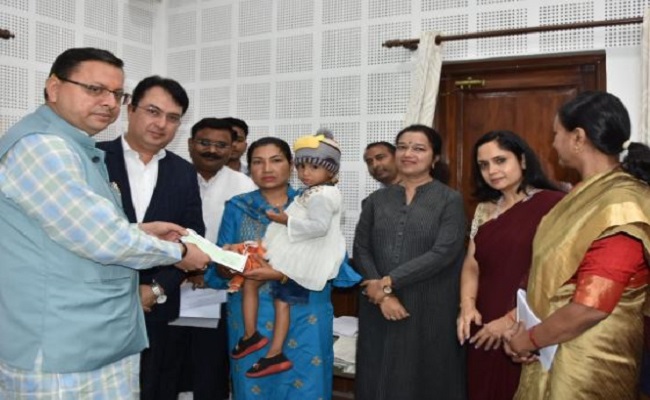 मुख्यमंत्री पुष्कर सिंह धामी ने मृतक सिपाही प्रदीप कुमार की पत्नी दीपमाला को मुख्यमंत्री कैम्प कार्यालय में 50 लाख रुपए का चेक सौंपा। यह चेक एचडीएफसी बैंक की ओर से मृतक सिपाही की पत्नी को दिया गया। प्रदीप कुमार का वेतन अकाउंट एचडीएफसी बैंक में संचालित था, जबकि उनका कोई अंशदान भी नहीं कट रहा था।