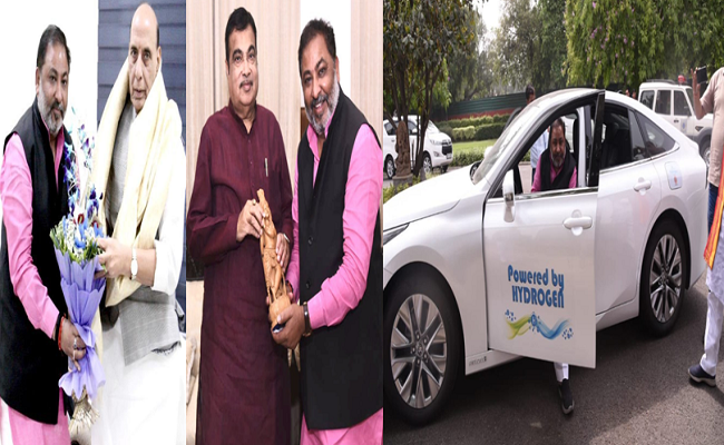 नई दिल्ली. उत्तर प्रदेश के परिवहन मंत्री दयाशंकर सिंह दिल्ली दौरे पर हैं। दयाशंकर सिंह ने रक्षा मंत्री राजनाथ सिंह और केंद्रीय मंत्री नितिन गडकरी से मुलाकात की है। इस दौरान यूपी क परिवहन मंत्री ने ग्रीन हाइड्रोजन से चलित कार में सफर किया और कहा कि ग्रीन हाइड्रोजन से चलने वाली गाड़ियां बड़ी क्रांति लाएंगी।