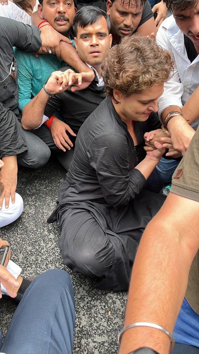 इस दौरान प्रियंका गांधी बैरिकेड पर चढ़ गईं। उन्होंने कहा की देश में लोकतंत्र की हत्या हो रही है। जिसके बाद वो कांग्रेस दफ्तर के बाहर सड़क पर बैठीं, और पुलिस लगातार उन्हें हिरासत में लेने का प्रयास कर रही है।