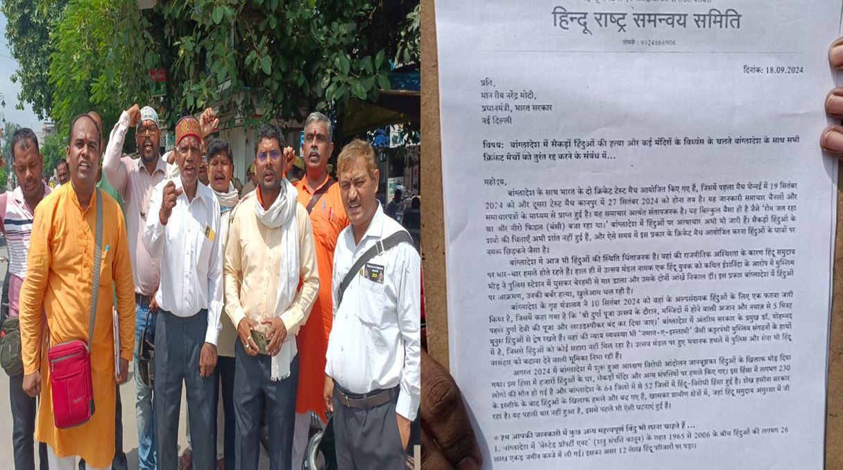 टेस्ट क्रिकेट मैच को रद्द किए जाने की मांग को लेकर हिंदू जन जागृति संगठन के कार्यकर्ता पीएम मोदी के संसदीय जनसंपर्क कार्यालय पहुंचे। कार्यकर्ताओं को पुलिस ने संसदीय जनसंपर्क कार्यालय के कुछ दूर पहले रोक दिया। कार्यकर्ताओं ने मैच रद्द करने की मांग को लेकर कार्यकर्ताओं ने नारेबाजी किया। हिंदू जन जागृति समिति के निलय पाठक ने मैच रद्द करने की मांग को लेकर कहा कि बांग्लादेश में अल्पसंख्यक हिंदुओं पर लगतार अत्याचार हो रहा है, हिंदू मंदिरों पर हमला किया जा रहा है। ऐसे में बांग्लादेश से किसी प्रकार का कोई भी खेल और मनोरंजन का संबंध तब तक भारत को नही रखना चाहिए, जब तक वहां के हालात हिंदुओं के अनुकूल ना हो।
