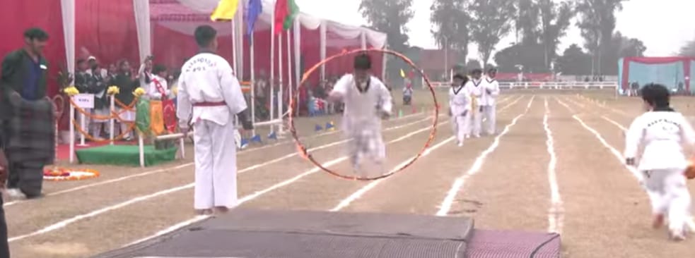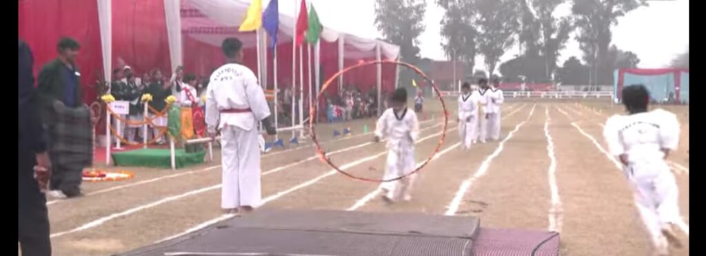 डीपीएस के छात्रों ने टाइकान्डो ड्रिल में जलते टायल को तोड़ कर एंव फायर रिंग में छलांग लगा कर अपने साहस और पराक्रम से सबको आश्चर्यचकित कर दर्शकों में जोश भर दिया।
