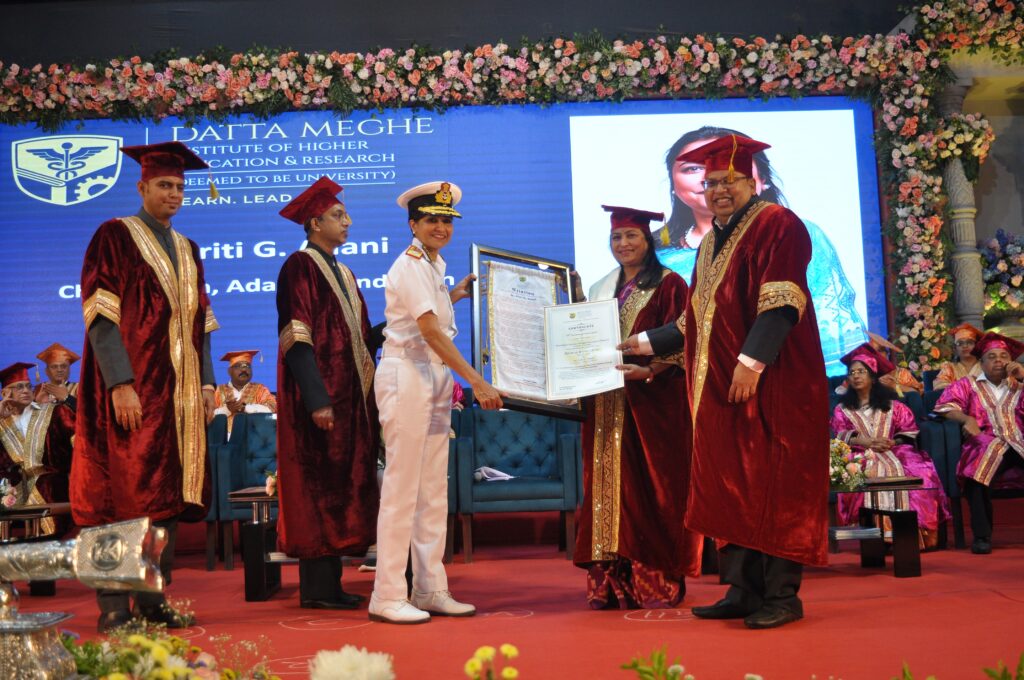 डीएमआईएचईआर के 16वें दीक्षांत समारोह में विश्वविद्यालय के चांसलर दत्ता मेघे ने डॉ. अदाणी को यह प्रतिष्ठित उपाधि प्रदान की। इस अवसर पर डॉ. अदाणी ने अपने संबोधन में कहा, “सेवा साधना है, सेवा प्रार्थना है और सेवा ही परमात्मा है,” और उन्होंने कमजोर समुदायों के लिए समावेशी प्रगति और स्थायी बदलाव की दिशा में अपनी जीवनभर की प्रतिबद्धता का पुनः संकल्प लिया।