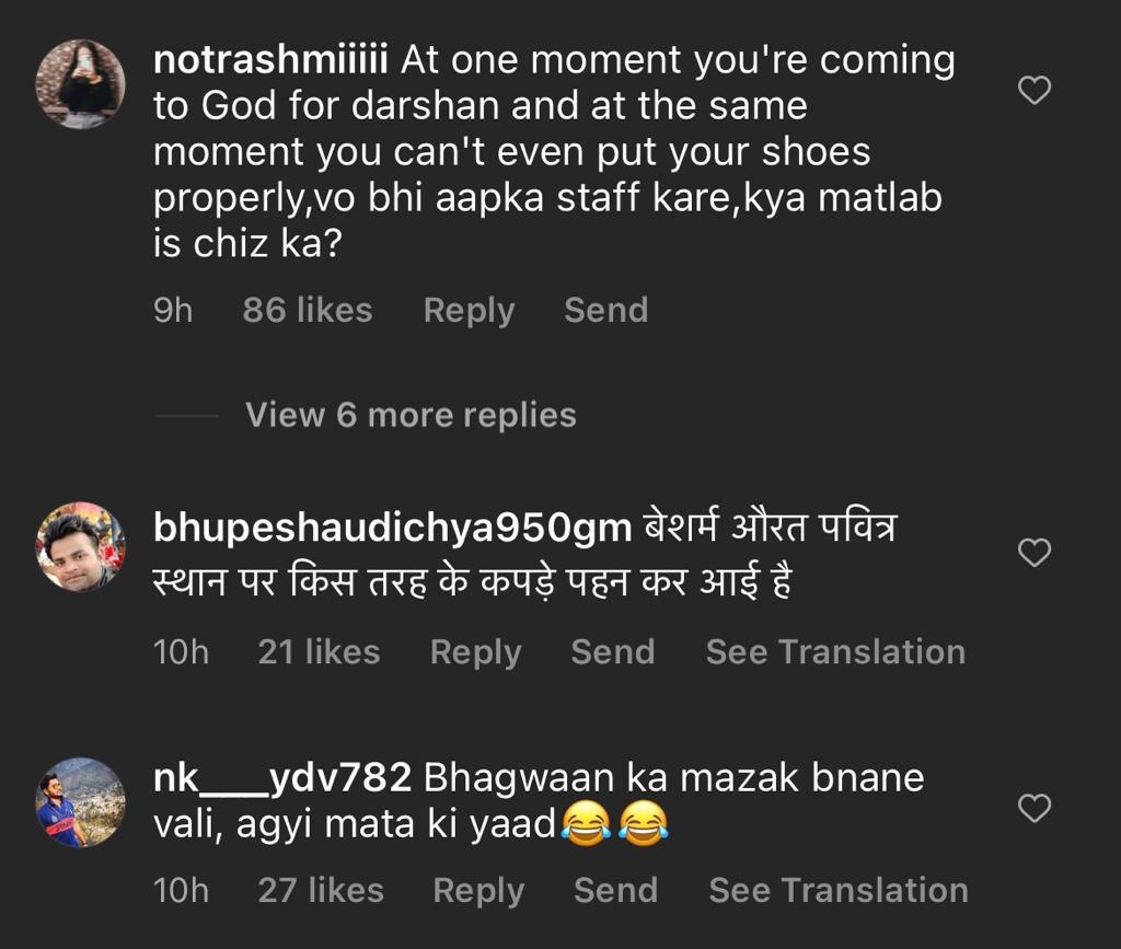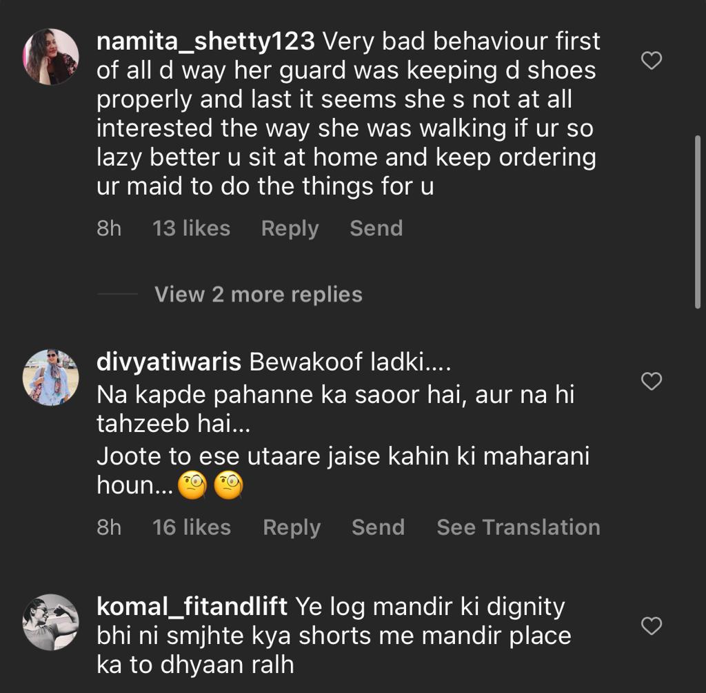 जिसके चलते अब एकता कपूर को सोशल मीडिया पर जमकर ट्रोल किया जा रहा है। एकता कपूर के इस वीडियो पर एक यूजर ने कमेंट करते हुए लिखा है कि- ये कोई जिम सेंटर नहीं है जो इस तरह के कपड़े पहनकर आया है, ये एक मंदिर है. एक अन्य यूजर ने लिखा है कि- ऐसे कौन मंदिर आता है, ऐसे कपड़े पहनकर मंदिर में आने में शर्म आनी चाहिए. बॉलीवुड पर शर्म आती है। ऐसे सभी यूजर्स ने एकता कपूर की जमकर क्लास लगाई है।