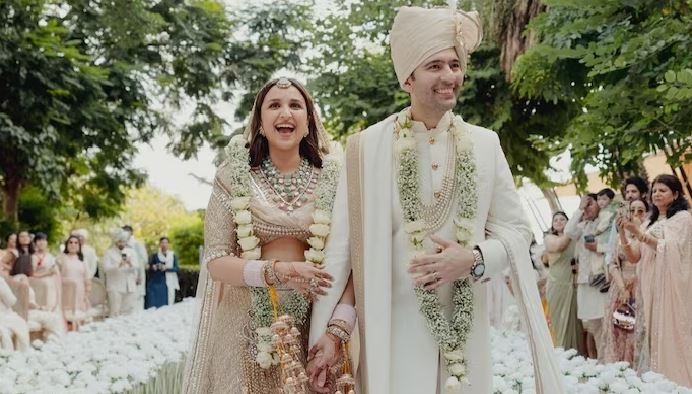 परिणीति चोपड़ा और राघव चड्ढा उदयपुर के ‘द लीला पैलेस’ होटल में आलीशान समारोह में शादी के बंधन में बंध गए हैं। 24 सिंतबर को उदयपुर में इस कपल ने सात फेरे लिए। परिणीति और राघव की शादी की तस्वीरें सोशल मीडिया पर खूब वायरल हो रही हैं और हर कोई इस कपल को बधाइयाँ दे रहा है।