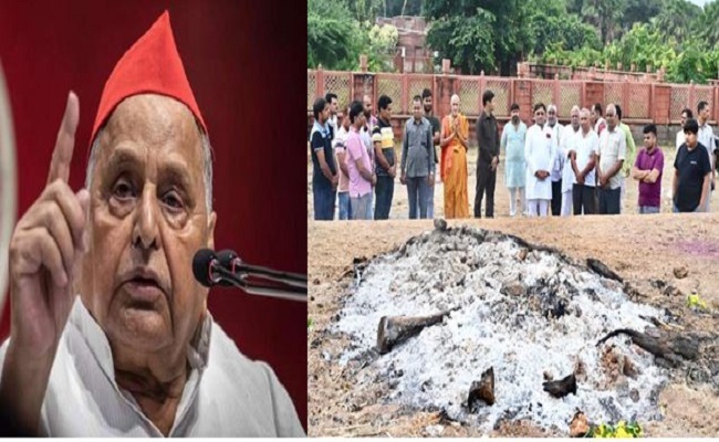 मंगलवार को मुलायम सिंह यादव को नम आंखों से श्रद्धांजिल दी गई। इसके बाद पूरे विधि-विधान से सैफई के दिवंगत लाल और समाजवादी के सच्चे और अडिग पहरेदार, धरतीपुत्र नेताजी के पार्थिव शरीर का दाह संस्कार किया गया। अखिलेश यादव ने अपने दिवंगत पिता को मुखाग्नि देकर उन्हें शून्य की यात्रा पर प्रस्थान कराया। बता दें, नेताजी के अंतिम संस्कार में शामिल होने कई बड़ी हस्तियां और VVIP लोग सैफई पहुंचे और उनके अंतिम दर्शन किए।