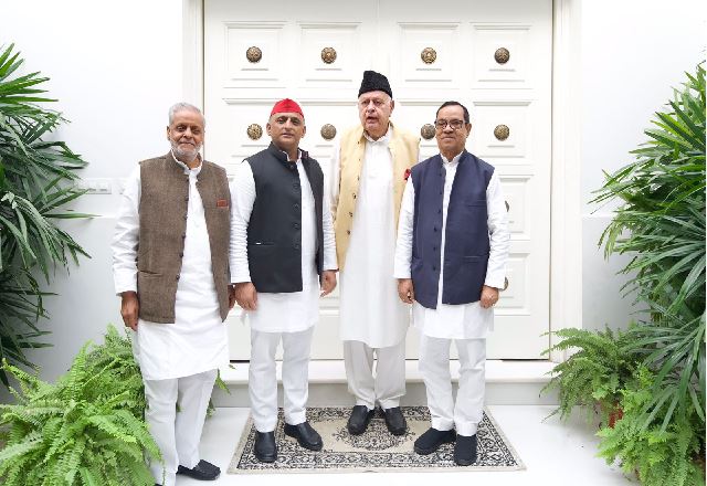 फारुख अब्दुल्ला का यकीन है कि देश को बचाने का दारोमदार उत्तर प्रदेश पर है। यहां से केन्द्र की राजनीति प्रभावित होती है। सबसे ज्यादा 80 सांसद उत्तर प्रदेश से ही चुने जाते हैं। अखिलेश के नेतृत्व से पूरे मुल्क को उम्मीद है। फारुख अब्दुल्ला और अखिलेश यादव ने देश में आपसी भाईचारा बनाये रखने का आव्हान् किया और कहा कि देश में अमन-चैन, तरक्की और संविधान को बचाने के लिए धर्मनिरपेक्ष और लोकतांत्रिक ताकतों को आगे बढ़ना है। अखिलेश यादव ने कश्मीर की तरक्की और खुशहाली की कामना की है। उन्होंने कहा कि आज कश्मीर के नौजवानों का कोई भविष्य नहीं रह गया है। बेरोजगारी लगातार बढ़ती जा रही है। कश्मीर में विकास के लिए कोई काम नहीं हो रहा है। चारों तरफ घोर निराशा है।