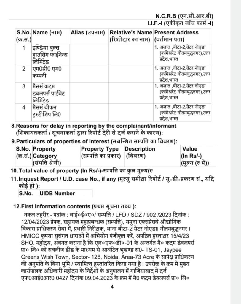 अथॉरिटी से बिना मंजूरी के जमीन खुर्द-बुर्द किया गया. इस घोटालेबाज बिल्डर ने ना ही नक्शा पास करवाया था और ना ही रेरा की भी मंजूरी ली थी. इसके साथ ही इंडिया बुल्स कंपनी पर भी फ्रॉड की एफआईआर दर्ज हुई है और कदम डेवलपर्स और बीकन ट्रस्टीशिप पर भी FIR हुई है.