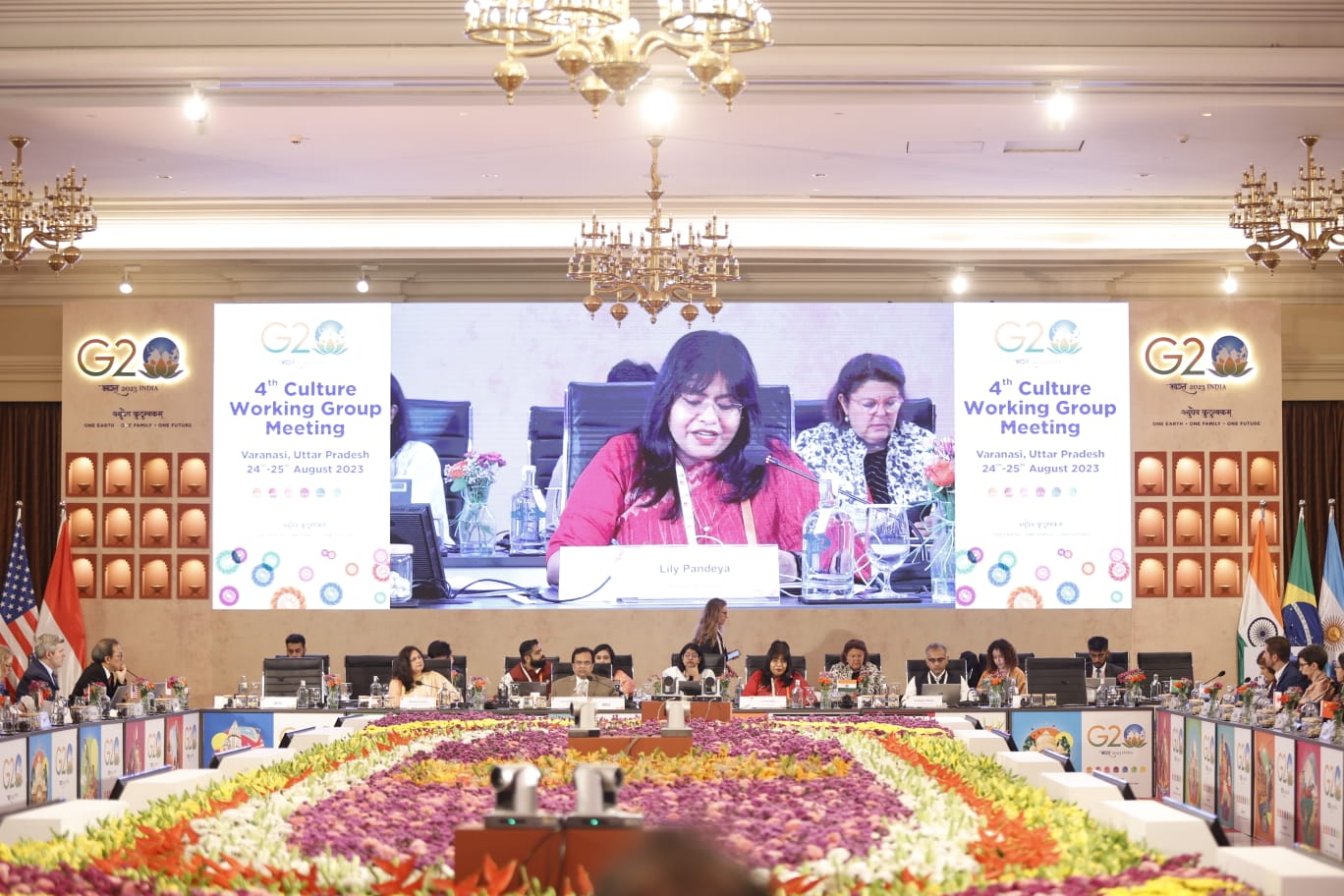 वाराणसी- उत्तर प्रदेश के वाराणसी में गुरुवार को G -20 संस्कृति कार्य समूह (CWG) की बैठक शुरू हुई। बैठक में G -20 देशों के 170 प्रतिनिधी शामिल हुए। पहले दिन भारत की अध्यक्षता में G- 20 संस्कृति कार्य समूह की चौथी बैठक में G -20 के सदस्यों और अंतरराष्ट्रीय संगठनों के प्रतिनिधियों के साथ पूर्व की घोषणा पर आज चर्चा किया गया। वहीं इस मौके पर भारत की चंद्रयान -3 की सफलता पर इसरो के वैज्ञानिकों की सराहना की गई।