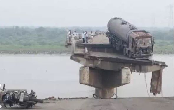 पुल से गुजर रहीं थीं भारी गाड़ियां