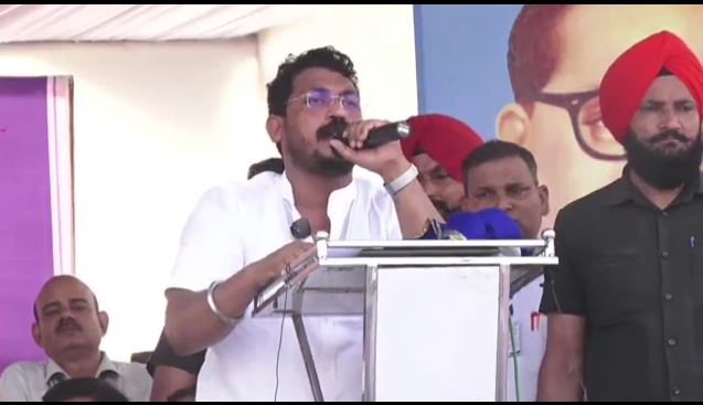आपको बता दे कि सोमवार को बिजनौर के धामपुर इलाके में केएम इंटर कॉलेज के मैदान में सामाजिक न्याय संविधान बचाओ रैली का आयोजन किया गया था। जिसमें आजाद समाज पार्टी के अध्यक्ष व भीम आर्मी के चीफ चंद्रशेखर आजाद शामिल हुए थे. सभा को संबोधित करते हुए एक तरफ जहां चंद्रशेखर ने कहा कि देश के हालात ठीक नहीं चल रहे हैं लोकतंत्र संविधान को बचाना जरूरी हो गया है। बहुजन संस्थापक काशीराम के परिनिर्वाण दिवस पर सभी को एक होकर संघर्ष करने की कसम खिलाई और कहा कि हम उनके अधूरे सपनों को हर हाल में पूरा कर संविधान को नहीं बदलने देंगे.
