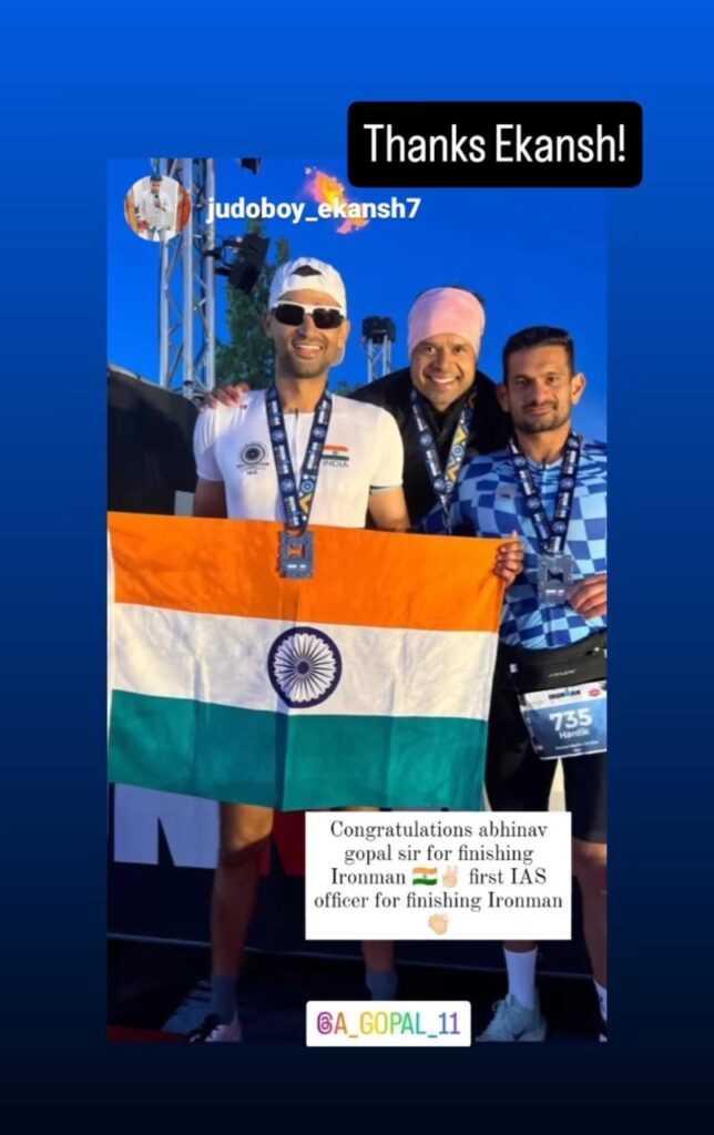 ग़ाज़ियाबाद : यूपी कैडर के 2020 बैच आईएएस अफसर अभिनव गोपाल ने देश और प्रदेश का नाम रौशन करते हुए कीर्तिमान स्थापित किया है। उन्होने यूरोपियन देश एस्टोनिया में आयोजित हुए आयरन मैन प्रतियोगिता में दिए गए टास्क को 14 घण्टो के भीतर बिना रुके फिनिश कर मेडल जीता है। अभिनव गोपाल ने इस प्रतियोगिता के लिए लंबे समय से तैयारी की थी। वो अपने व्यस्त शेड्यूल से समय निकालकर रोजाना प्रैक्टिस करते थे। एस्टोनिया में ये प्रतियोगिता 24 अगस्त को आयोजित हुई थी। जिसके बाद वो आज देश लौट आये है।अभिनव गोपाल ने भारत समाचार से बात करते हुए कहा कि वो पहले आईएएस अफसर है जिन्होंने ये मेडल जीता है। इसके लिए उन्होने लगातार प्रैक्टिस कर इसकी तैयारी की थी। इस प्रतियोगिता मे 3.9 किलोमीटर की स्विमिंग, 180 किलोमीटर साइकिलिंग, 42 किलोमीटर की फुल मैराथन शामिल था। उन्होंने ये सभी इवेंट तमाम मुश्किलातों के बाद 14 घण्टे में पूरी कर ली। अभिनव गोपाल ने बताया कि इस दौरान तेज बहने वाली हवाओ के चलते बाल्टिक समुंद्र में ऊंची लहरे उठ रही थी जिसमें तैरना बेहद मुश्किल हो रहा था।इसके बाद साइकिलिंग के दौरान तो 35 किलोमीटर की रफ्तार से हवाई सामने और साइड से चल रही थी जो पूरे टास्क को मुश्किल बना रही थी।