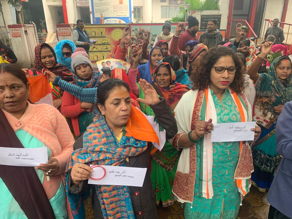 वाराणसी के आईआईटी बीएचयू में नवंबर माह में हुए छात्रा के साथ दुष्कर्म मामले में करीब 2 माह बाद आरोपियों की गिरफ्तारी पर विपक्ष बीजेपी के खिलाफ लामबंद हो गई है। समाजवादी पार्टी और कांग्रेस के नेता बीजेपी नेताओं पर आरोपियों को बचाने का आरोप लगा रहे है। कांग्रेस की महानगर अध्यक्ष पूनम विश्वकर्मा ने वाराणसी में बीजेपी नेताओं को चूड़ियां भेजते हुए गिरफ्तारी पर सवाल उठाया है।
