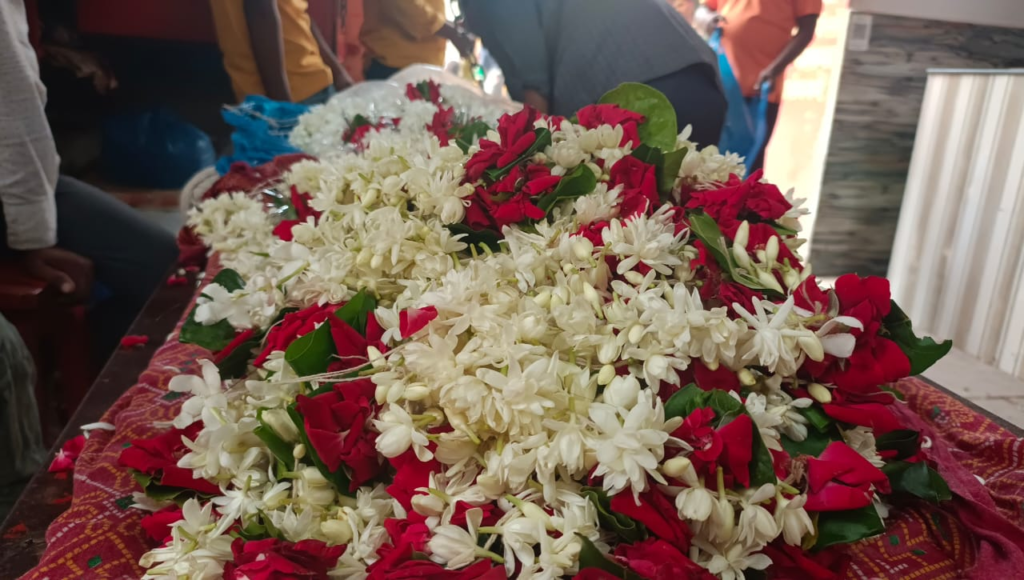 बरसात की वजह से फूलों का अवाक हुआ कम, डिमांड बढ़ने से बढ़े दाम