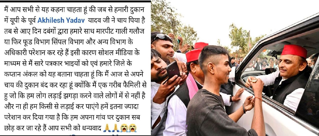 इस मामले में ताजा जानकारी ये भी सामने आ रही है कि फतेहपुर के चाय वाले आर्यन ने फेसबुक पर एक पोस्ट किया है इस पोस्ट में चाय वाले ने लिखा- “मैं आज से अपनी चाय की दुकान बंद कर रहा हूं। मैं एक गरीब फैमिली से हूं।”… ‘अखिलेश ने चाय पी तो परेशान कर रहे’ – फतेहपुर का चाय वाला दुकान बंद करने को मजबूर है….