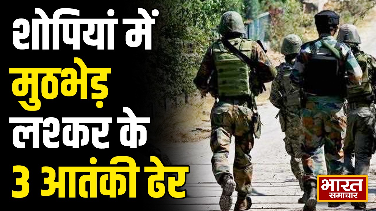 शोपियां, जम्मू कश्मीर: जम्मू और कश्मीर के शोपियां जिले के शुकरू केलर इलाके में आज सुरक्षा बलों और आतंकवादियों के बीच मुठभेड़ हुई, जिसमें 3 आतंकवादी ढेर हो गए। इस एनकाउंटर में लश्कर-ए-तैयबा (LeT) के तीन आतंकवादियों को मार गिराया गया।