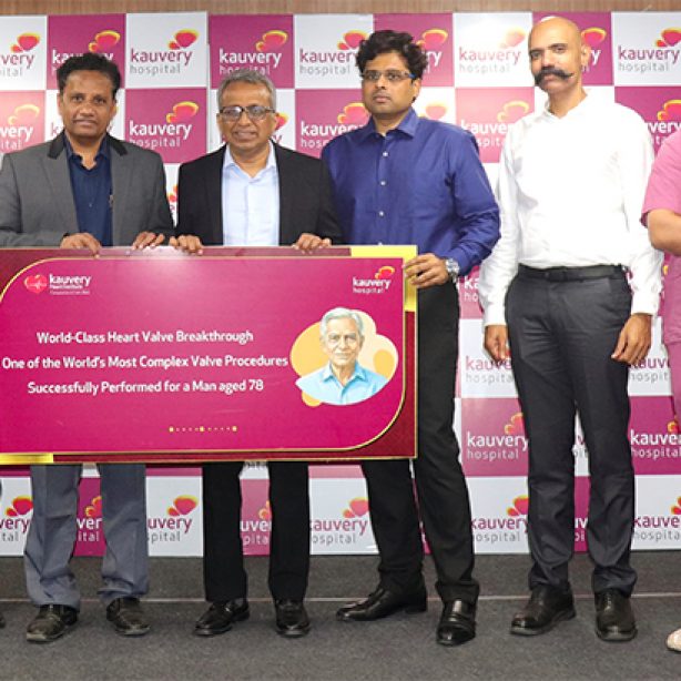 कावेरी हॉस्पिटल, अलवरपेट ने 78 साल के एक मरीज पर बायोप्रोस्थेटिक वाल्व फ्रैक्चर के साथ दुनिया का पहला TAVR-इन-TAVR-इन-SAVR प्रोसीजर सफलतापूर्वक किया है। यह एक अत्यधिक मुश्किल और दुर्लभ प्रक्रिया है, जो दुनिया में पहला केस है। यह एडवांस्ड ट्रांसकैथेटर इंटरवेंशन एक ऐसे मरीज के लिए किया गया था, जिसका एओर्टिक वाल्व रोग का लंबा और जटिल इतिहास था और जो बार-बार खराब होते जा रहे हार्ट वाल्व से परेशान था।