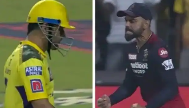 इसके बाद लगातार अंतराल पर सीएसके के विकेट गिरते रहें है। वही 19वे ओवर में जब हेजलवुड ने धोनी को मात्र 2 रन पर रजत पाटीदार के हाथों कैच करा आउट किया।जिसके बाद विराट कोहली ने कुछ ऐसा रिएक्शन दिया जिससे वह ट्रोलर्स के निशाने पर आ गए। दरअसल धोनी के कैच आअट होने के बाद विराट कोहली ने अभद्र भाषा का इस्तेमाल किया जिसका वीडिया अब सोशल मीडिया पर वायरल हो रहा है। और फैंस विराट कोहली को इसके लिए ट्रोल कर रहें है।