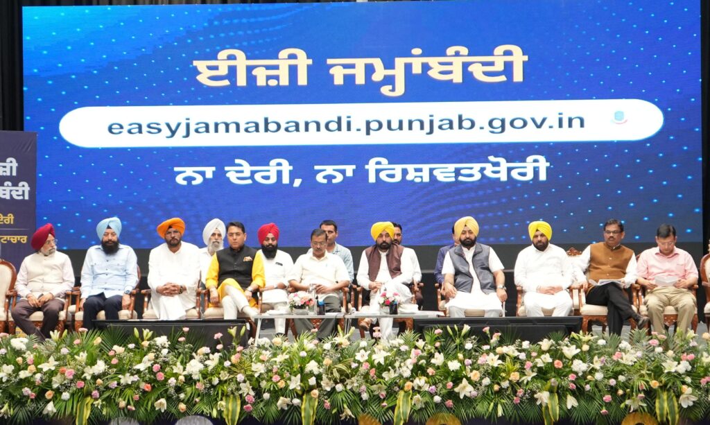अमृतसर : पंजाब के मुख्य मंत्री भगवंत सिंह मान और दिल्ली के पूर्व मुख्य मंत्री अरविंद केजरीवाल ने आज ‘ईजी जमाबंदी’ पोर्टल की शुरुआत की, जिसके साथ पंजाब ने अपने नागरिकों को भ्रष्टाचार मुक्त, सुचारू, परेशानी रहित और पारदर्शी सेवाएं प्रदान करने में सफलता का नया मुकाम हासिल किया है।