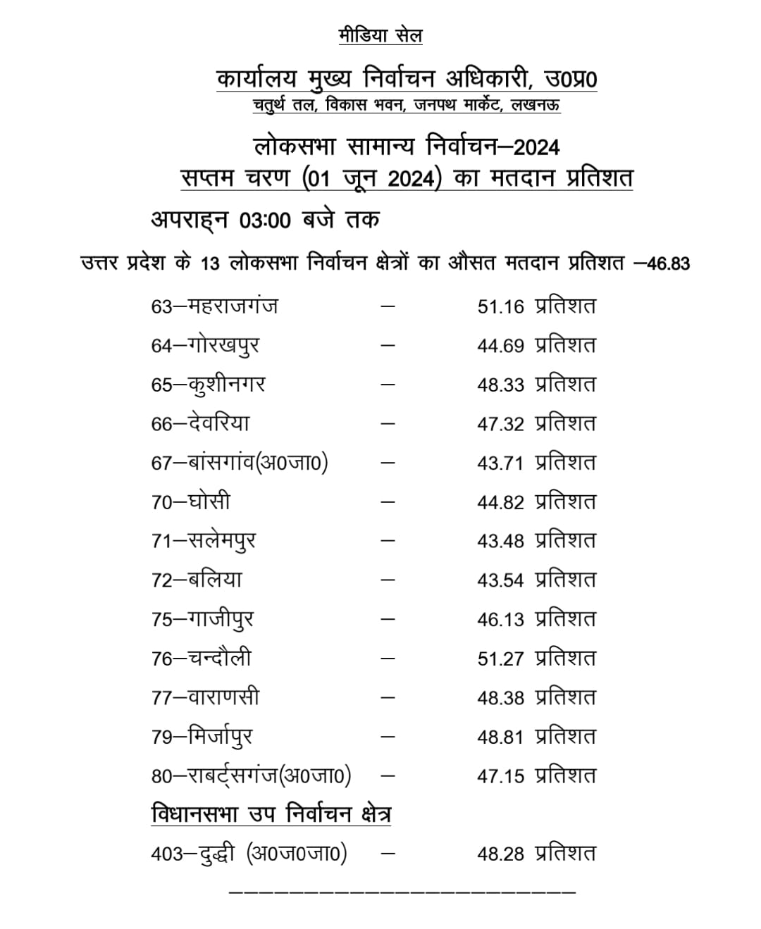 उत्तर प्रदेश-यूपी में 3 बजे तक 46.83 प्रतिशत मतदान