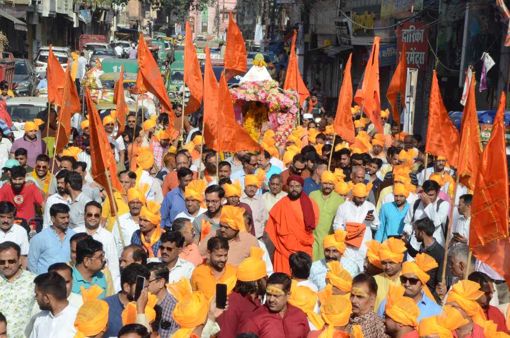 ग्वालियर। अक्षय तृतीया के पावन पर्व पर भृगु भवन में भगवान परशुराम का जन्मोत्सव धूमधाम से मनाया गया। भगवान परशुराम जन्मोत्सव धूमेश्वर धाम के महामंडलेश्वर 1008 अनिरुद्धबन महाराज व मुरार क्षेत्र के पीठाधीश्वर संतोष आनंद महाराज के सानिध्य में मनाया गया। सबसे पहले भगवान परशुराम का पूजन किया गया तत्पश्चात भगवान परशुराम की आरती कर प्रसादी वितरण किया गया। कार्यक्रम में सभी वर्गों के ब्राह्मणों ने शिरकत की और भगवान परशुराम का पूजन किया।