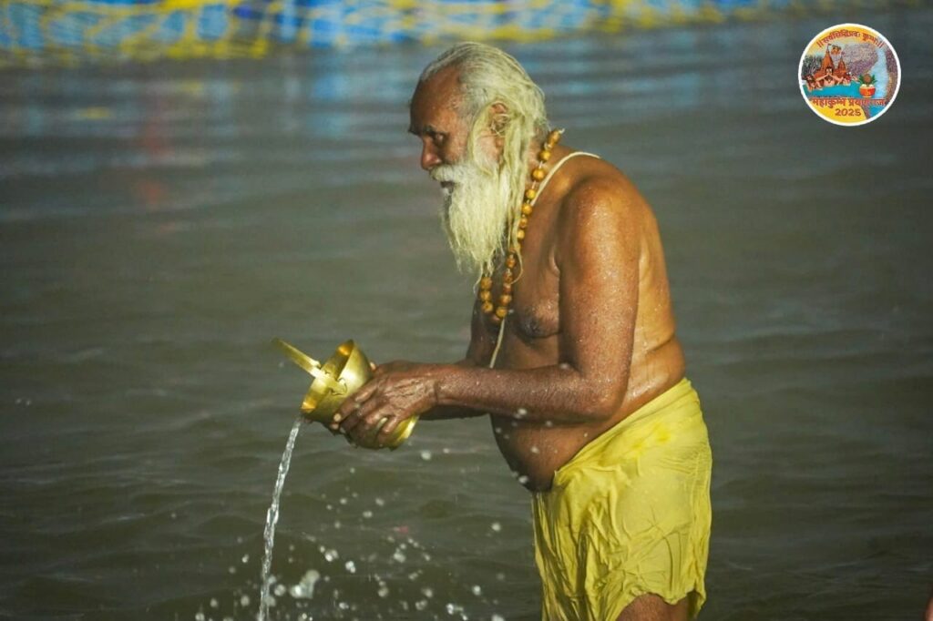 आधी रात से ही पौष पूर्णिमा की प्रथम डुबकी का शुभारंभ हो गया। इसी के साथ संगम में साधु संतों का स्नान करने का सिलसिला भी शुरु हो गया। तस्वीरों में देखें एक संत अपने कमंडल से जल अर्पित कर रहे हैं।