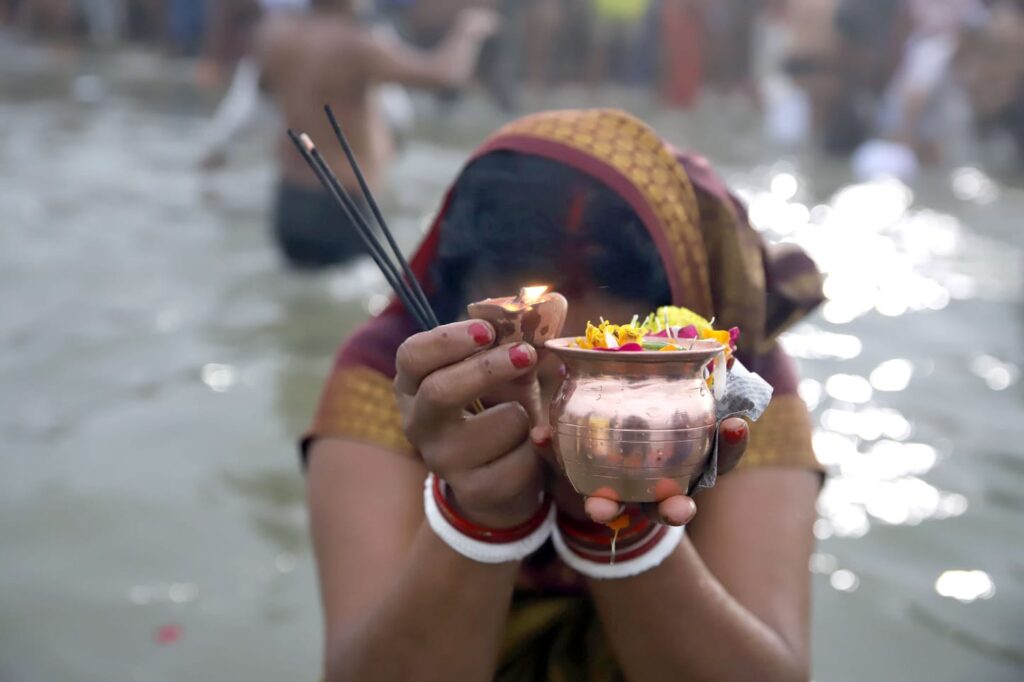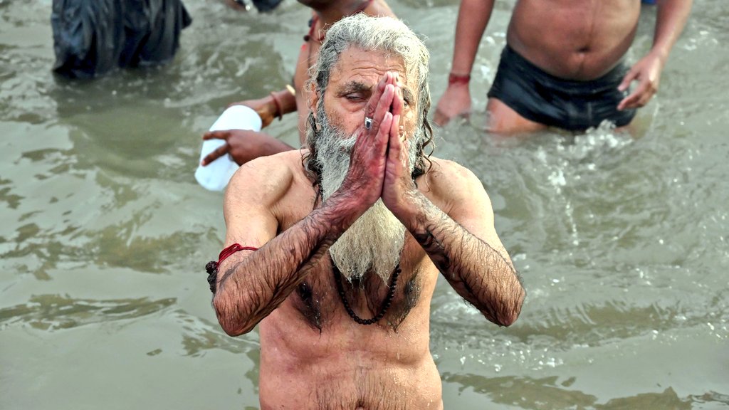 सुबह से ही लाखों श्रद्धालु गंगा के तटों पर पहुंचने लगे और सभी में होड़ थी कि सूर्योदय से पहले या उसके पास ही गंगा स्नान कर लिया जाए। तस्वीरों में देखें एक संत संगम में स्नान के साथ ही हाथ जोड़ सूर्य नमस्कार कर रहे हैं।