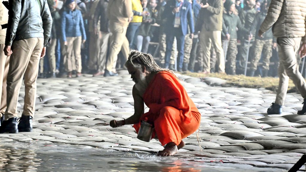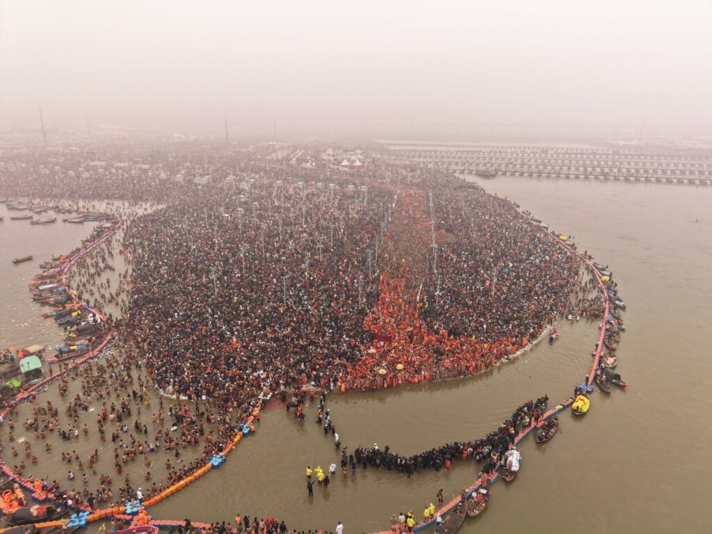 महाकुंभ में मकर संक्रांति के अवसर पर मंगलवार को पहला अमृत स्नान जारी है। कड़ाके की ठंड में आस्था का सैलाब उमड़ा है। चारों ओर आध्यात्मिकता का प्रकाश और धर्म की गूंज है।