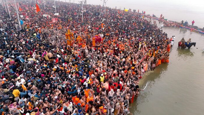 भजन-कीर्तन करते श्रद्धालुओं की टोलियां संगम में पांच डुबकियां लगाने के लिए बड़ी चली जा रही हैं। कांई गुजरात से आया है तो कोई महाराष्टÑ से। कोई राजस्थानी है तो कोई पंजाब से। पूरा भारत एक साथ प्रयाग में मानों समा गया हो। मानवता का ऐसा अप्रतिम संगम और श्रद्धा की ऐसी अनुपम छटा देखते ही बनती है। तीर्थराज प्रयाग में 144 वर्ष बाद आयोजित हो रहे महाकुम्भ के पहले अमृत स्नान में श्रद्धालुओं की संख्या अर्धकुम्भ में मौनी अमावस्या के दिन आने वाले श्रद्धालुओं की संख्या से अधिक है। श्रद्धालुओं से सभी सड़कें पटी पड़ी हैं। दोपहर 12 बजे तक डेढ़ करोड़ से अधिक लोग संगम में स्नान कर घर वापस हो रहे हैं। सरकार का अनुमान है कि मौनी अमावस्या पर तीन करोड़ के करीब श्रद्धालु संगम में स्नन करेंगे।