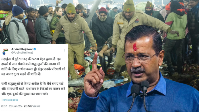 इसी बीच अरविंद केजरीवाल ने घटना पर दुख व्यक्त करते हुए ट्वीट किया कि महाकुंभ में हुई भगदड़ की घटना बेहद दुखद है। इस हादसे में जान गंवाने वाले श्रद्धालुओं की आत्मा की शांति के लिए प्रार्थना करता हूँ। ईश्वर उनके परिवारों को यह अपार दुःख सहने की शक्ति दें। सभी श्रद्धालुओं से विनम्र अपील है कि धैर्य बनाए रखें और सावधानी बरतें। प्रशासन के निर्देशों का पालन करें और एक-दूसरे की सुरक्षा का ध्यान रखें।