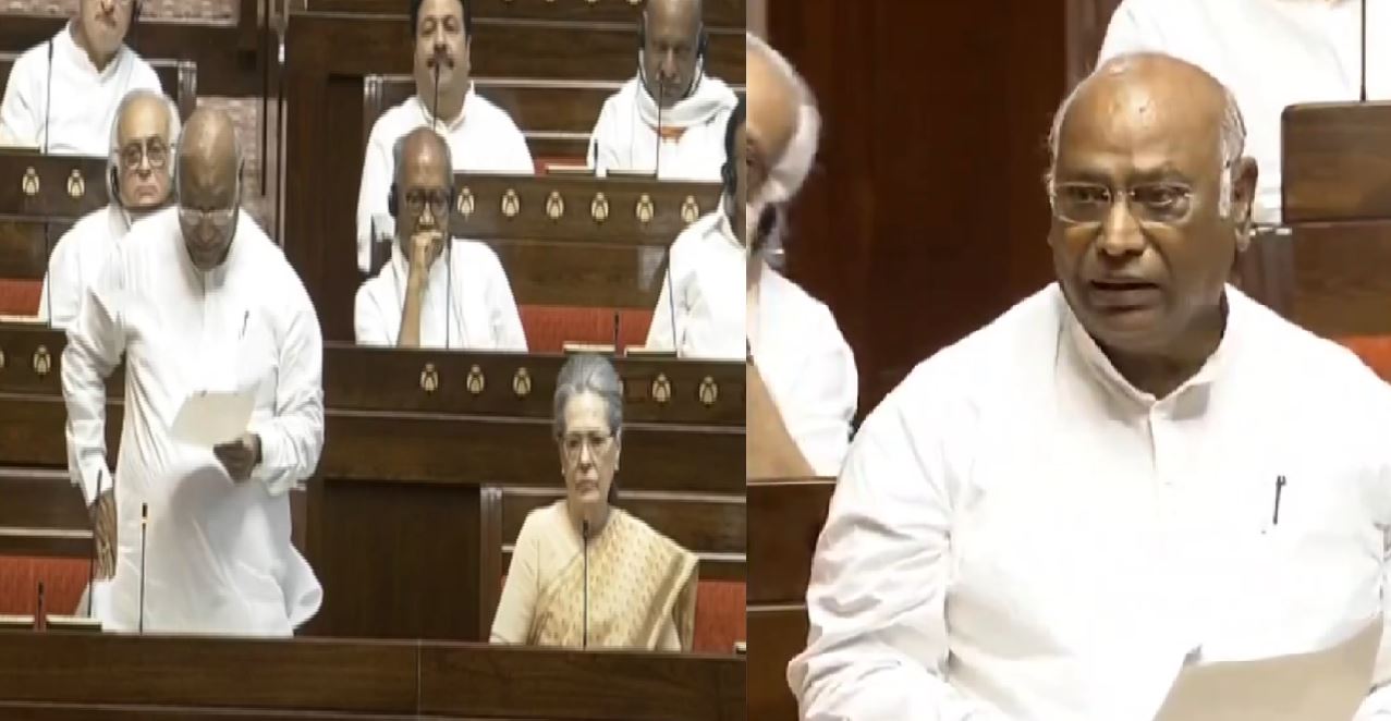 राज्यसभा में मल्लिकार्जुन खड़गे ने भरी हुंकार, बीजेपी पर बरसते हुए बोले-हम संविधान बचाने के लिए खड़े हैं