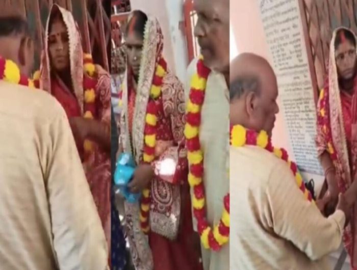 इसी बीच बीते रविवार की रात बुजुर्ग महिला को लेकर गांव के मंदिर पहुंचा। जैसे ही गाँव वालों को इसकी भनक लगी काफी लोग वहां पहुंच गए। जिसके बाद दोनों ने एक दूसरे को जयमाला पहनाकर सभी के सामने शादी रचा ली। साथ ही बुजुर्ग ने अपने पास रखे एक थैले से सिंदूर निकालकर महिला के माथे पर लगा दिया। मौके पर मौजूद लोगों ने अपने-अपने मोबाइल में ये पूरा वाक्या कैद किया और कुछ ही देर में सोशल मीडिया पर दोनों का ये वीडियो वायरल हो गया।