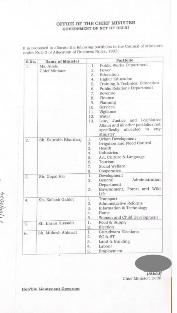 सीएम आतिशी को मिले सबसे ज्यादा मंत्रालय