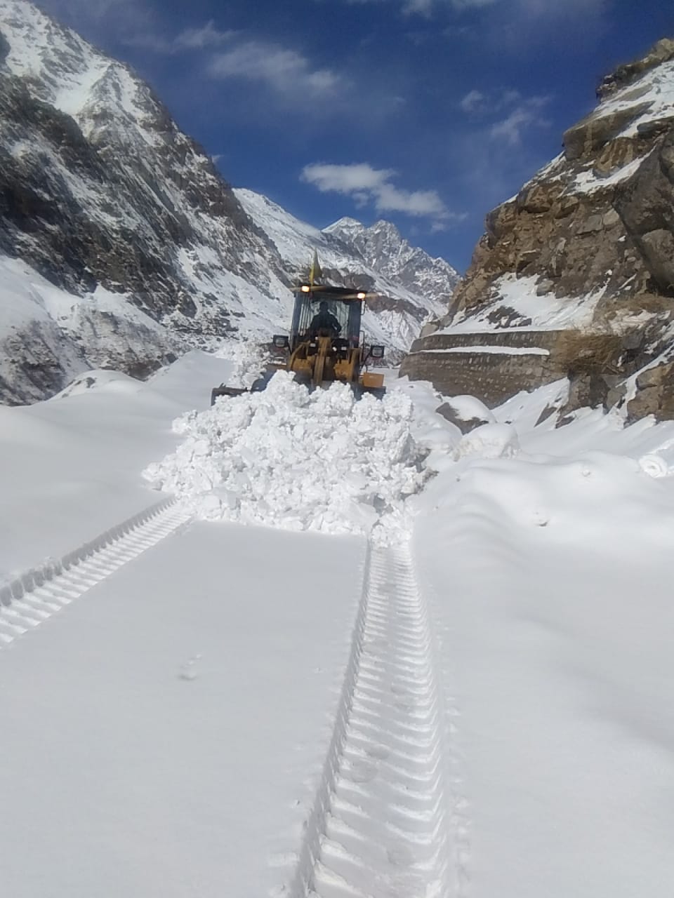 आपको बता दें कि यह दोनों तस्वीरें बद्रीनाथ धाम और नीति घाटी की है जहां पर कई फीट बर्फ सड़क में बिछी हुई है। जहां पर बीआरओ दिन में भी सड़क खोलने के कार्यो में जुटी हुई है। और आपको बता दें कि सड़क खोलने का कार्य बीआरओ युद्ध स्तर पर कर रही है।