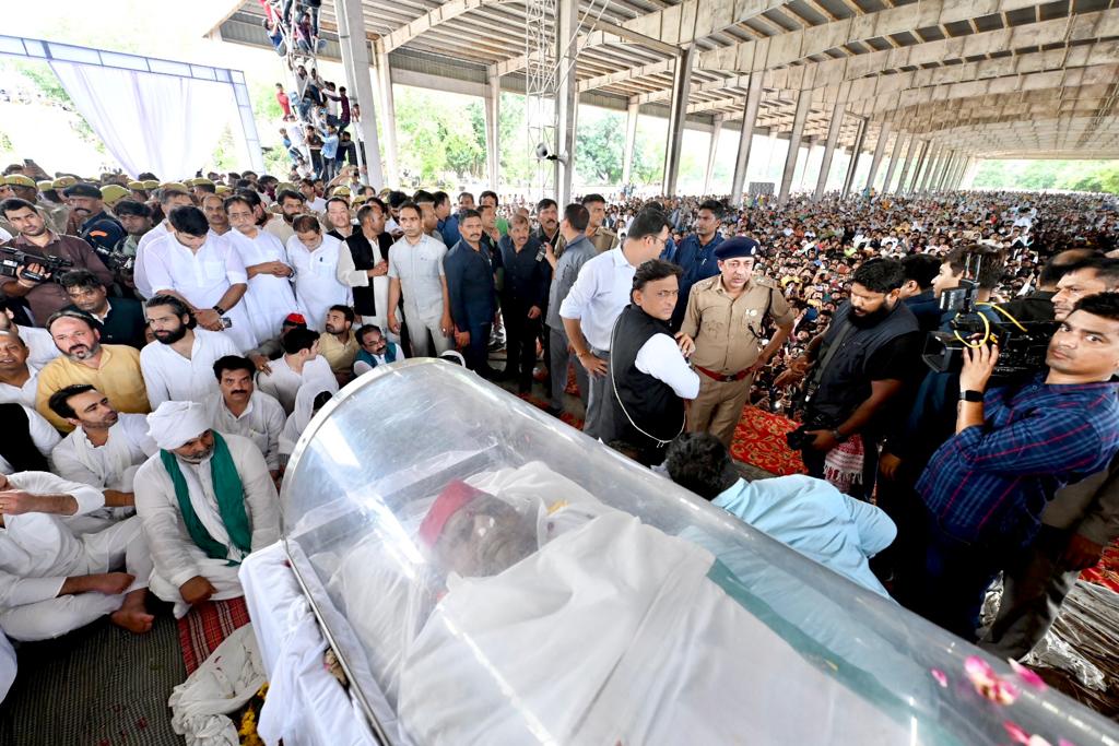 मुलायम सिंह यादव के अंतिम दर्शन के लिए लाखों की संख्या में पार्टी कार्यकर्त्ता वहां पहुंचे। सभी पार्टियों के दिग्गजों भी नेता जी के अंतिम दर्शन के लिए वहां पहुंचे।