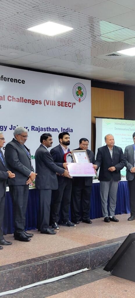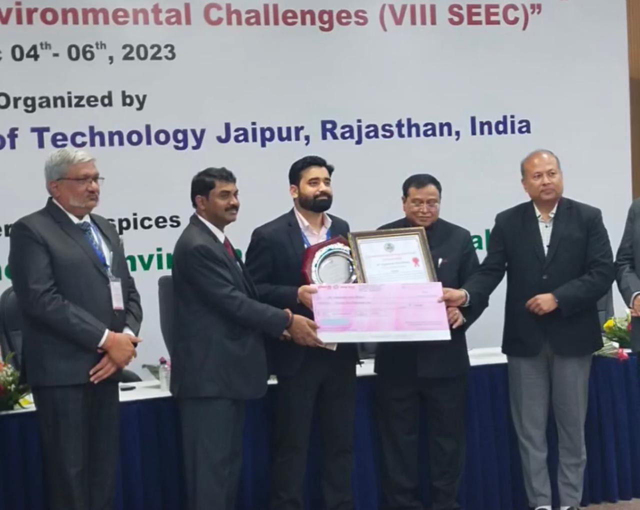 डॉ. योगेश्वर नाथ मिश्रा ने बताया कि यह पुरस्कार उन्हें ऊर्जा प्रौद्योगिकी के क्षेत्र में उत्कृष्ट शोध के लिए दिया गया। उन्हें यह पुरस्कार आज एमएनआईटी जयपुर में सोसायटी के 8 वें अंतर्राष्ट्रीय सम्मेलन के दौरान प्राप्त हुआ। उन्हे यह पुरस्कार डॉ. वी.के. सारस्वत ने दिया।