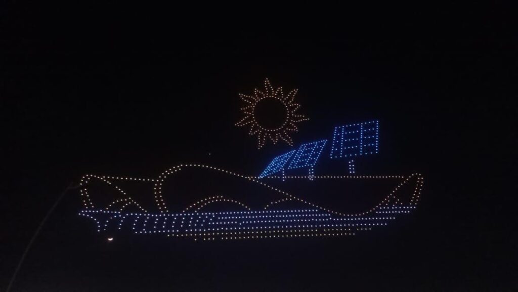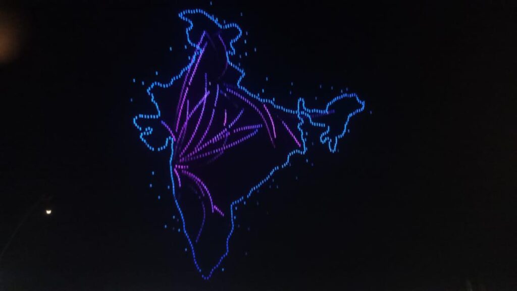 नवी मुंबई इंटरनेशनल एयरपोर्ट (NMIA) के संचालन की शुरुआत के पहले दिन, एयरपोर्ट के उद्घाटन को चिह्नित करने के लिए 1,515 ड्रोन के साथ एक शानदार ड्रोन शो आयोजित किया गया।