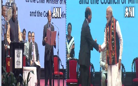 कोहिमा: नेफ्यू रियो ने नागालैंड के मुख्यमंत्री पद के लिए शपथ ग्रहण किया। इस अवसर पर प्रधानमंत्री नरेंद्र मोदी उपस्थित रहे। https://t.co/Ppc2p4Fdi0 pic.twitter.com/JaeUTWbPYJ