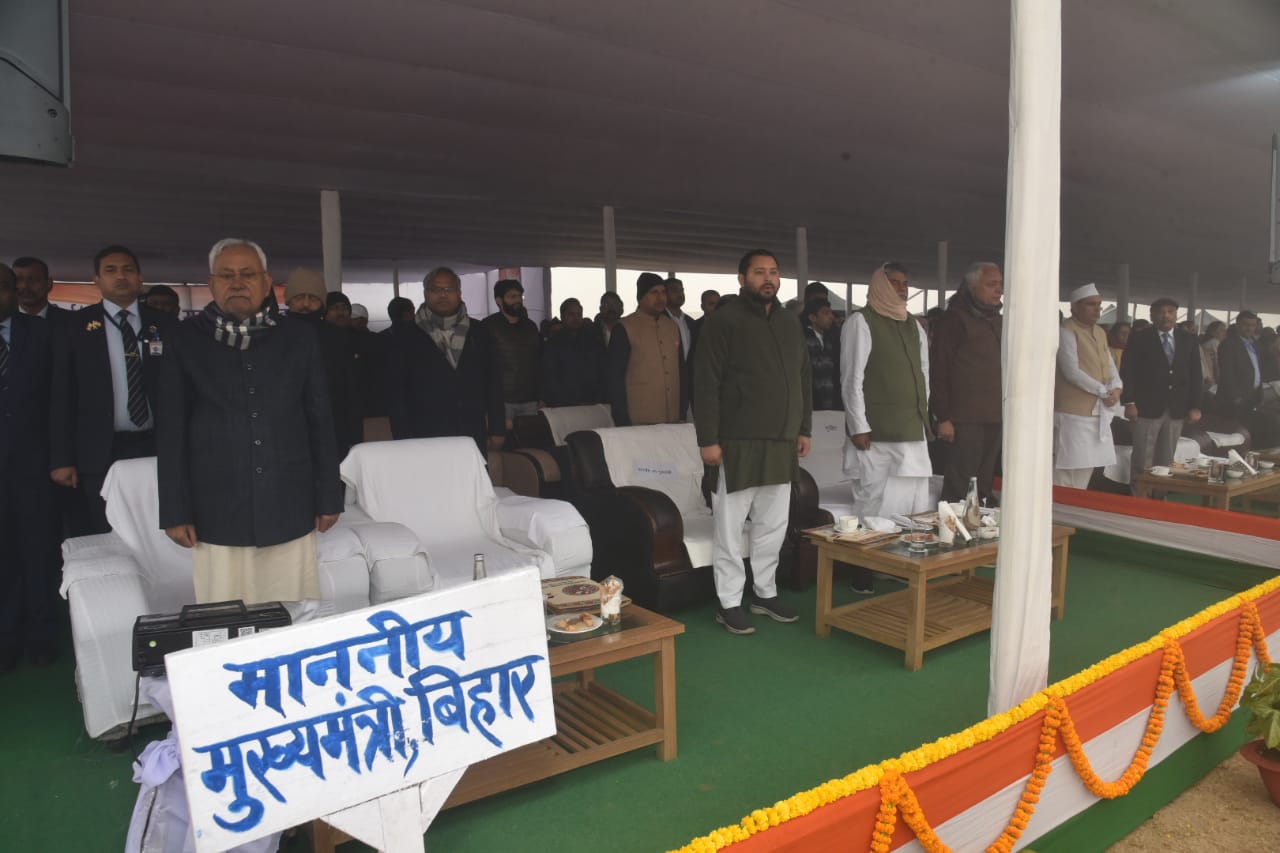 गणतंत्र दिवस के मौके पर आयोजित सरकारी कार्यक्रम में मुख्यमंत्री नीतीश कुमार और उपमुख्यमंत्री तेजस्वी यादव की कुर्सी एक जगह लगाई गई थी। लेकिन तेजस्वी यादव सीएम के बगल वाली कुर्सी छोड़कर दूर दूसरी कुर्सी पर अपने पार्टी के नेताओं और विधानसभा अध्यक्ष अवध बिहारी चौधरी के बगल में जाकर बैठ गए।