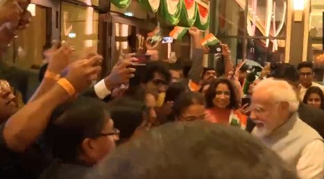 प्रधानमंत्री नरेंद्र मोदी गुरुवार को देर रात संयुक्त अरब अमीरात की राजधानी दुबई पहुंचे, जहां पर उनका जोरदार स्वागत हुआ। इस दौरान पीएम मोदी जैसे ही दुबई के होटल पहुंचे वहां प्रवासी भारतीयों ने उनका स्वागत किया। प्रशंसकों ने ‘अबकी बार मोदी सरकार’ और ‘वंदे मातरम’ के नारे भी लगाए। इस दौरान एक सेल्फी और ऑटोग्राफ की होड़ मच गई। पीएम मोदी ने सबसे मिलकर उनसे बात की और हालचाल जाना।