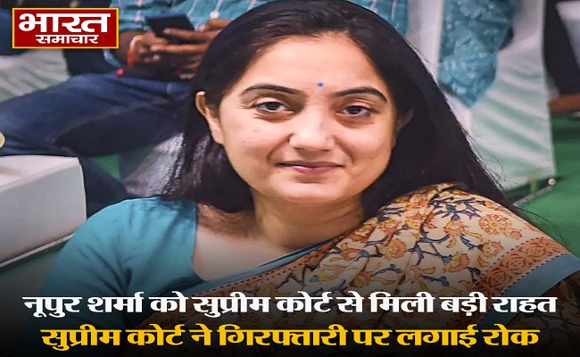 नूपुर शर्मा को सुप्रीम कोर्ट से बड़ी राहत मिली है, SC ने नूपुर शर्मा की गिरफ्तारी पर रोक लगाई है। नूपुर मामले में 10 अगस्त को अगली सुनवाई होगी। अगली सुनवाई यानि 10 अगस्त तक नूपुर शर्मा की गिरफ्तारी पर रोक लगाई गई है।