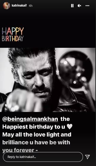 बॉलीवुड के दबंग खान सलमान के जन्मदिन पर उनकी खास दोस्त कटरीना कैफ ने जन्मदिन की बधाई देते हुए सोशल मीडिया पर एक पोस्ट साझा किया। कटरीना ने एक नोट शेयर कर स्पेशल अंदाज में जन्मदिन की बधाई दी है। कटरीना ने सलमान के साथ एक फोटो सोशल मीडिया पर शेयर कर लिखा है, सलमान खान हैप्पी बर्थडे टू यू. प्यार, रोशनी और ब्रिलिएंस हमेशा आपके साथ रहे। इसी के साथ ही कटरीना ने हार्ट वाली इमोजी भी बनाई है।