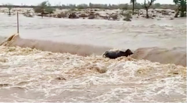 नदी का जलस्तर का ये रौद्र रूप देखकर हर कोई घबरा गया और बहती भैंसों को लोग केवल तमाशबीन बनकर नदी के पुल से ये खतरनाक नजारा देखते रह गए और लोगों के सामने एक-एक कर 5 भैंसें बह गई।