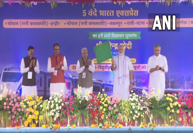 प्रधानमंत्री नरेंद्र मोदी ने भोपाल के रानी कमलापति रेलवे स्टेशन पर वंदे भारत ट्रेन में स्कूली छात्रों के साथ बातचीत की। प्रधानमंत्री नरेंद्र मोदी ने भोपाल के रानी कमलापति रेलवे स्टेशन से 5 वंदे भारत ट्रेनों को हरी झंडी दिखाई।