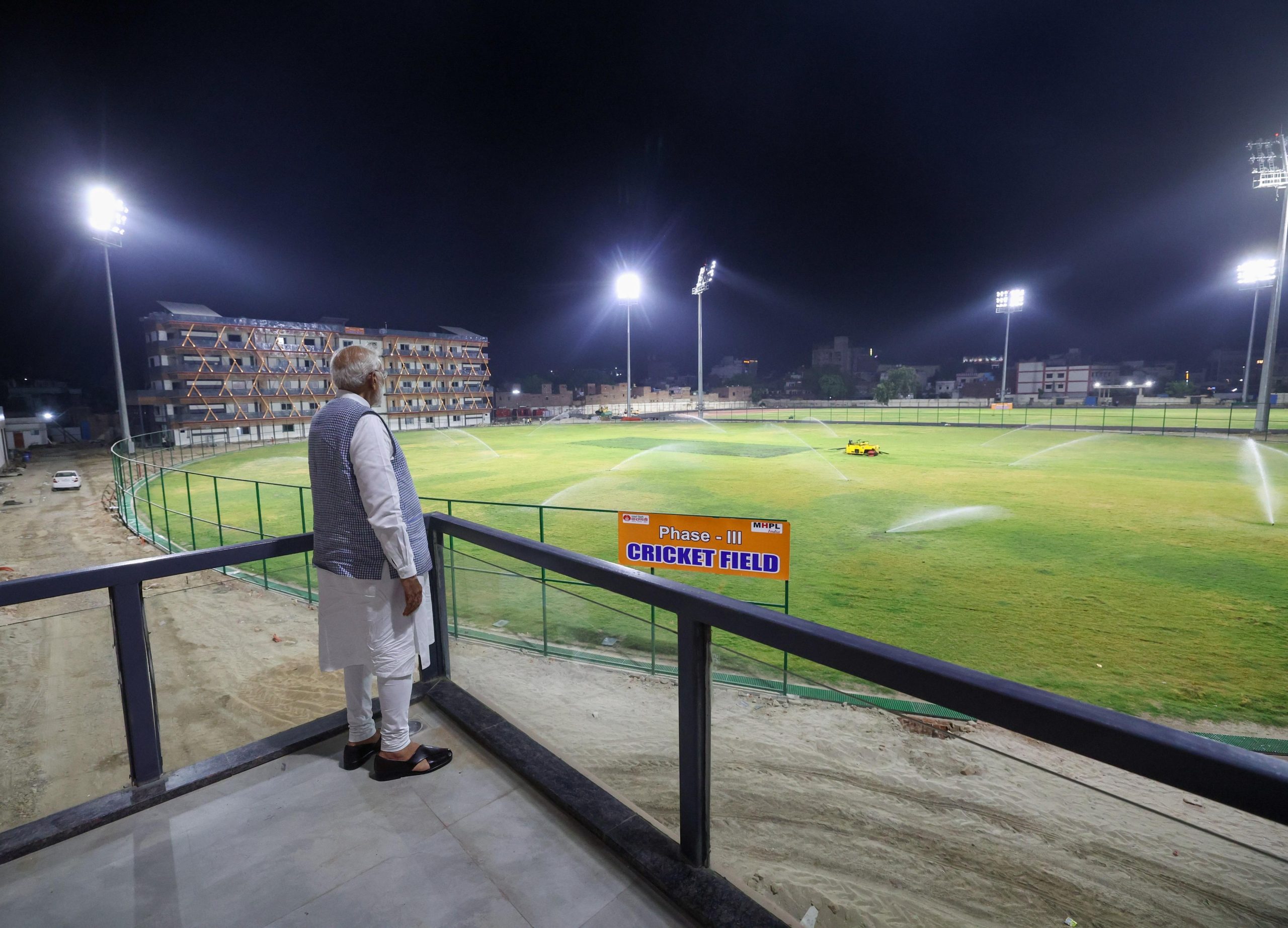 वाराणसी में अचानक देर रात निकले प्रधानमंत्री नरेंद्र मोदी, स्टेडियम का किया निरीक्षण