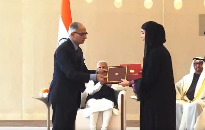 मोहम्मद बिन जायद अल नाहयान और पीएम मोदी की उपस्थिति में भारत और संयुक्त अरब अमीरात के बीच समझौता ज्ञापन (एमओयू) का आदान-प्रदान हुआ।